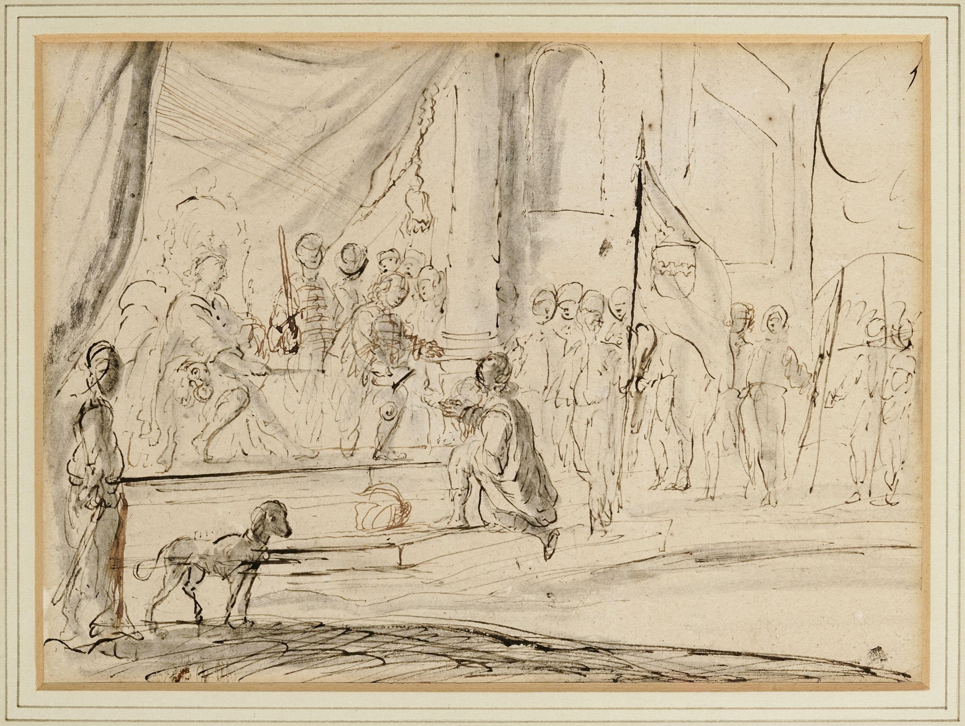 Scène probablement tirée de l'Histoire de Constantin, plume, 19x25 cm