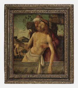 Sainte Famille, Saint Jean-Baptiste et un ange, huile sur pannea...