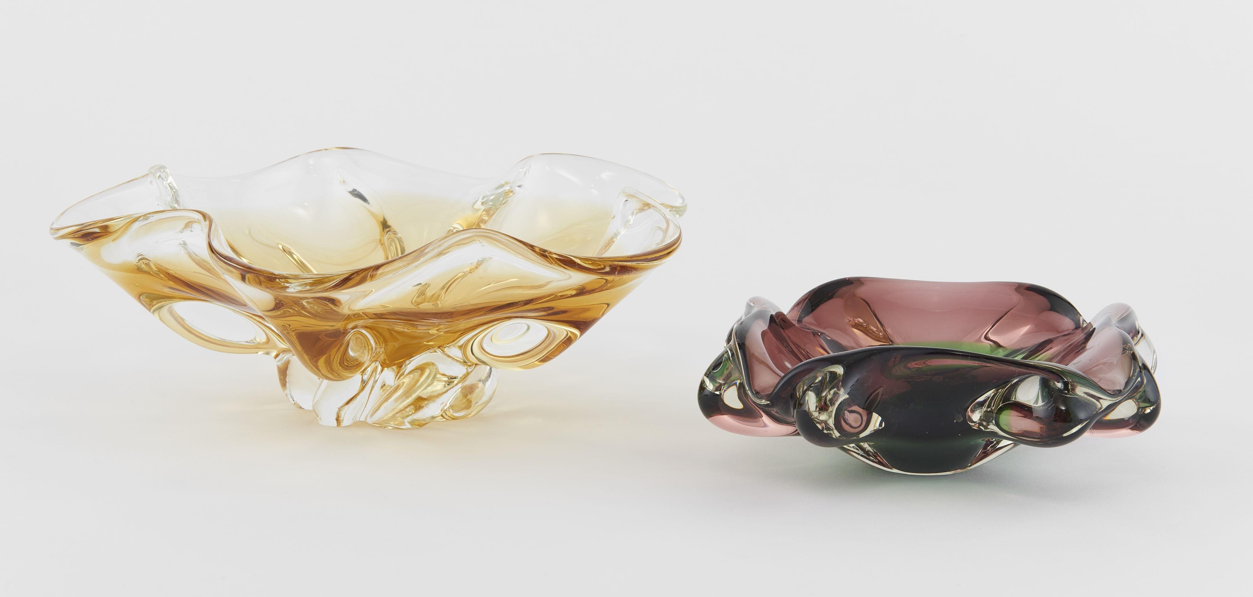 Une grande et une petite coupe, verre, D 28 et 18 cm