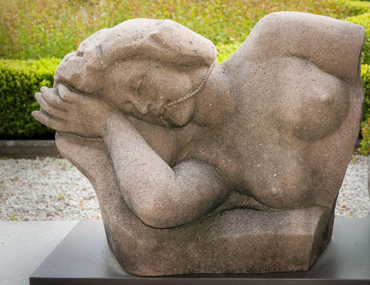 Femme au collier de perles, pierre reconstituée, L 94 cm. Collection David Sassoon