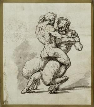 Combat de faunes, encre et lavis d'encre, ancienne collection Ni...