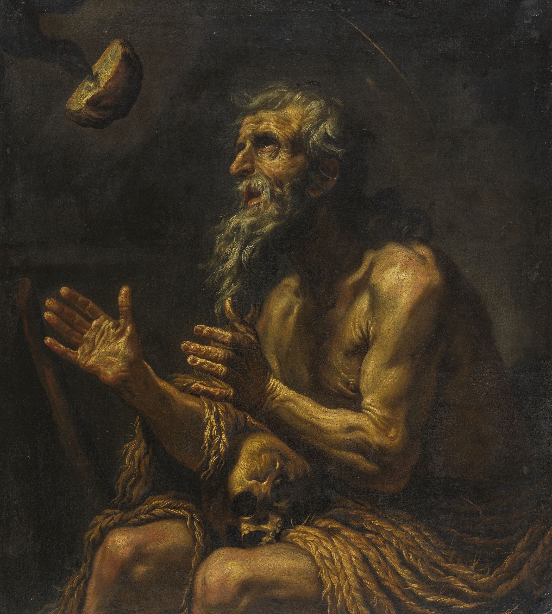 Saint Paul l'ermite recevant le pain, huile sur toile, 100x90 cm
