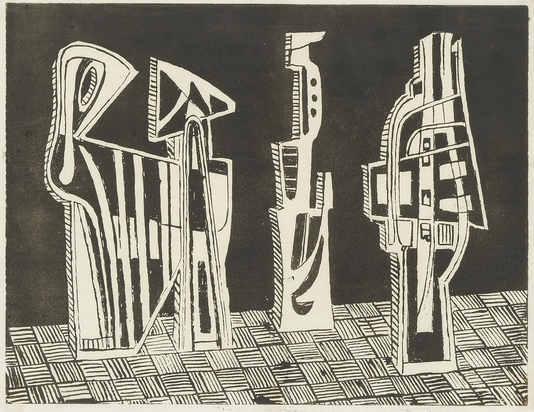 Figures surréalistes, linogravure, 26x34 cm