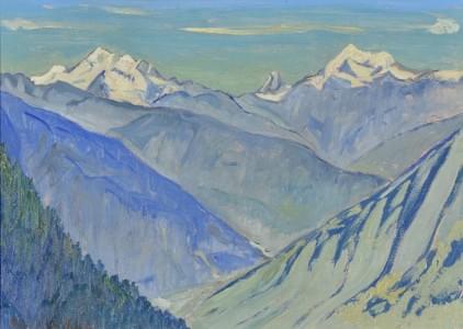 Paysage de montagne, aquarelle et gouache, signée, 24x19 cm