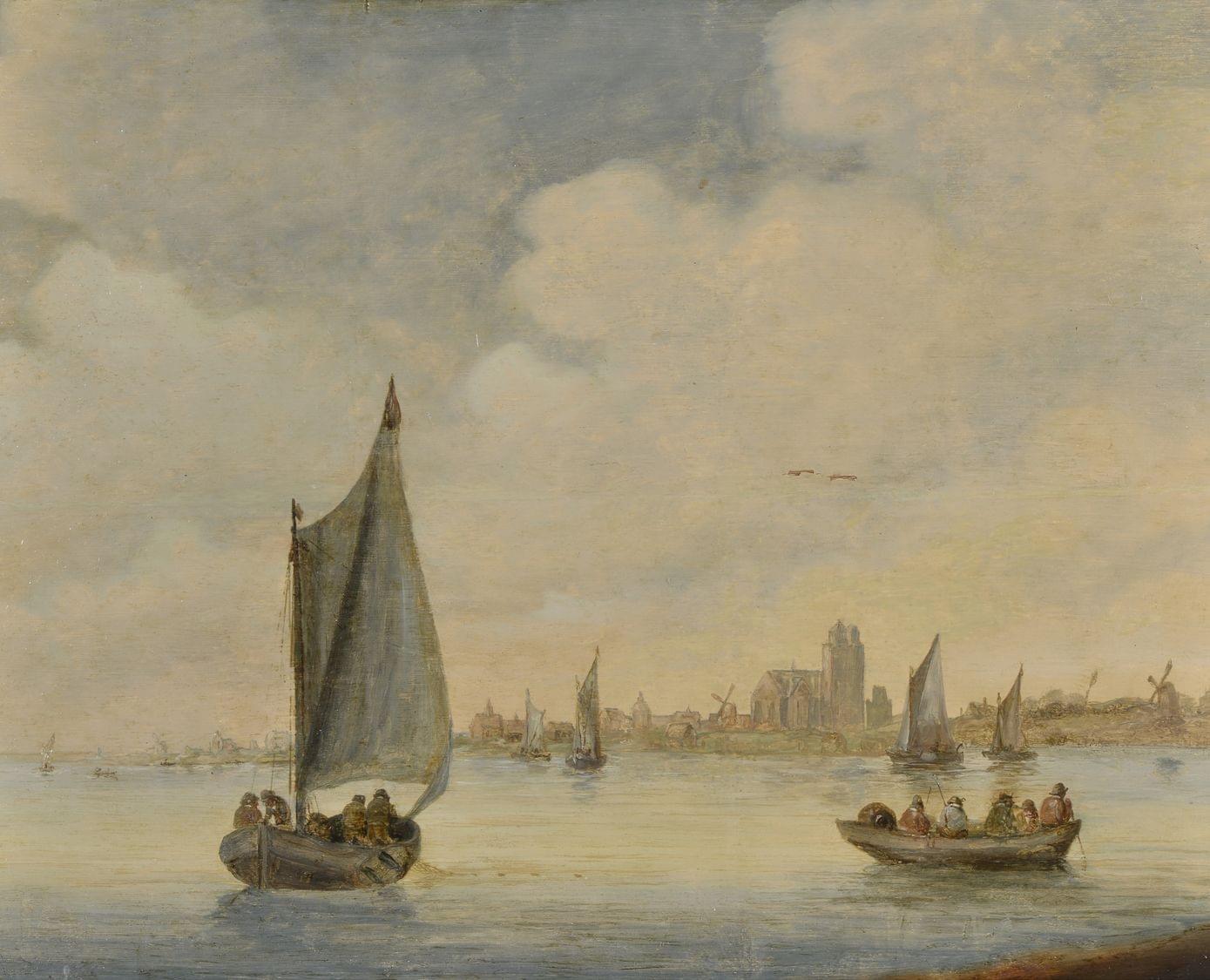 Barque de pêcheur sur le fleuve, huile sur panneau, 51x69 cm