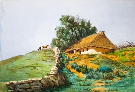 Paysans en chemin, aquarelle et plume sur papier, 26x33 cm
