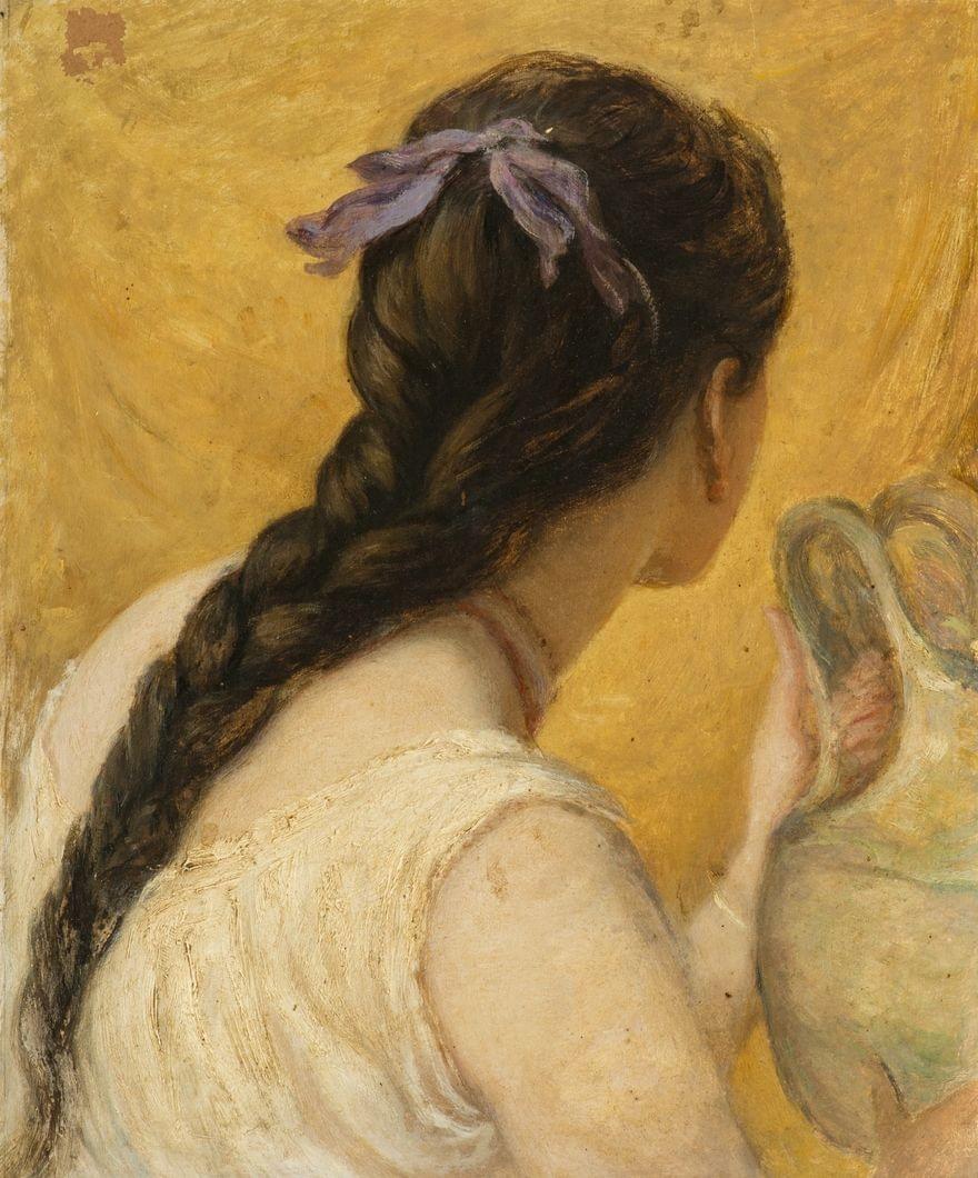 Femme à la tresse, huile sur carton, 30x24,5 cm