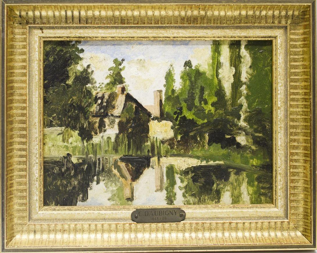 Village se reflétant dans les eaux, huile sur toile,17x24 cm