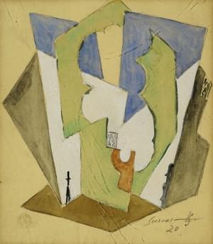 Abstraction, aquarelle sur papier, signée et datée 20, cachet de...