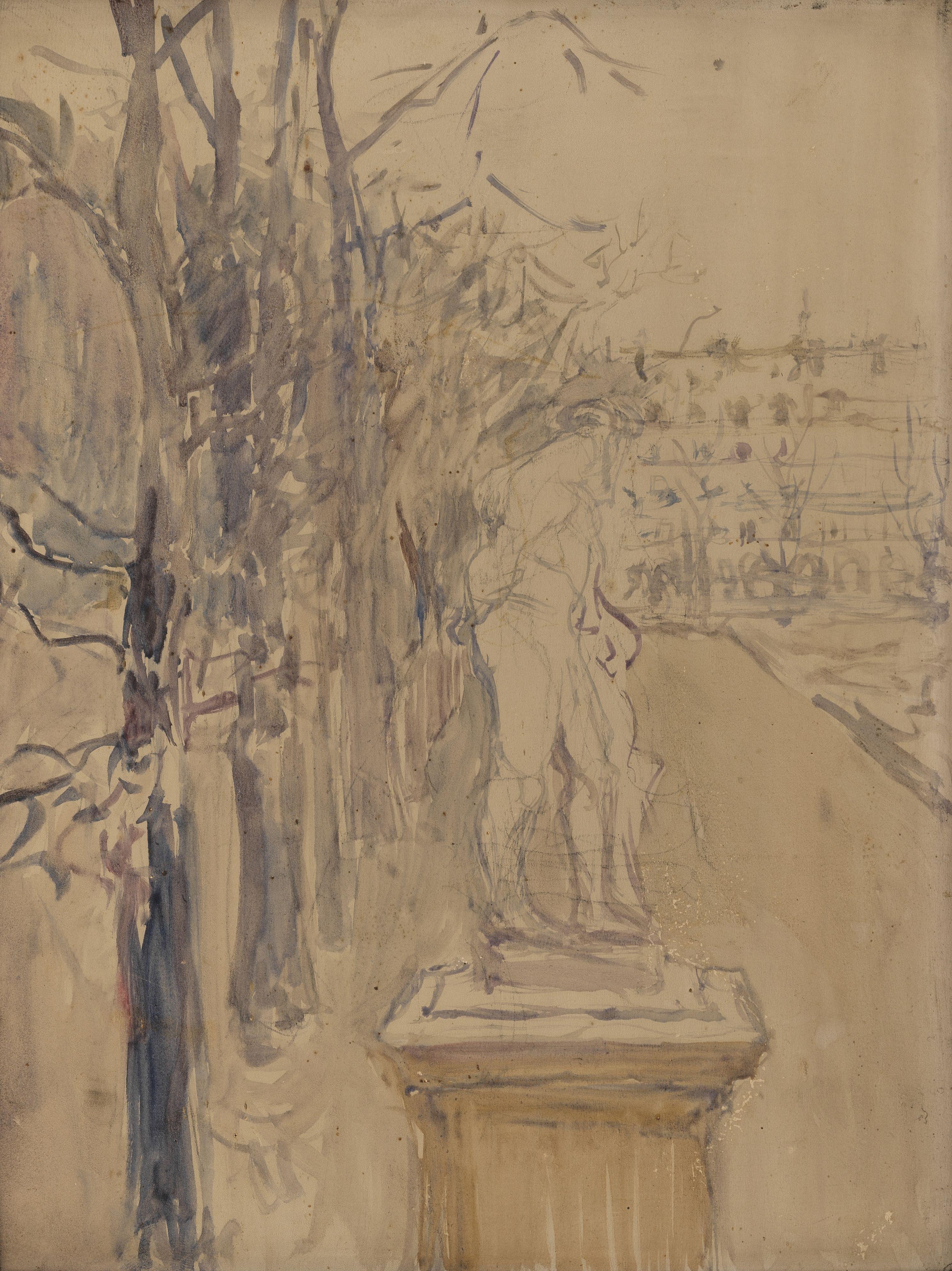 Statue d'Hercule au jardin des Tuileries, mine de plomb et aquarelle sur carton, 26x20 cm. Provenance: Famille de l'artiste