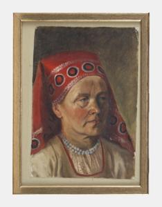 Paysane en costume traditionnel russe, huile sur toile, 35x25 cm.Provenance: Famille de l'artiste.