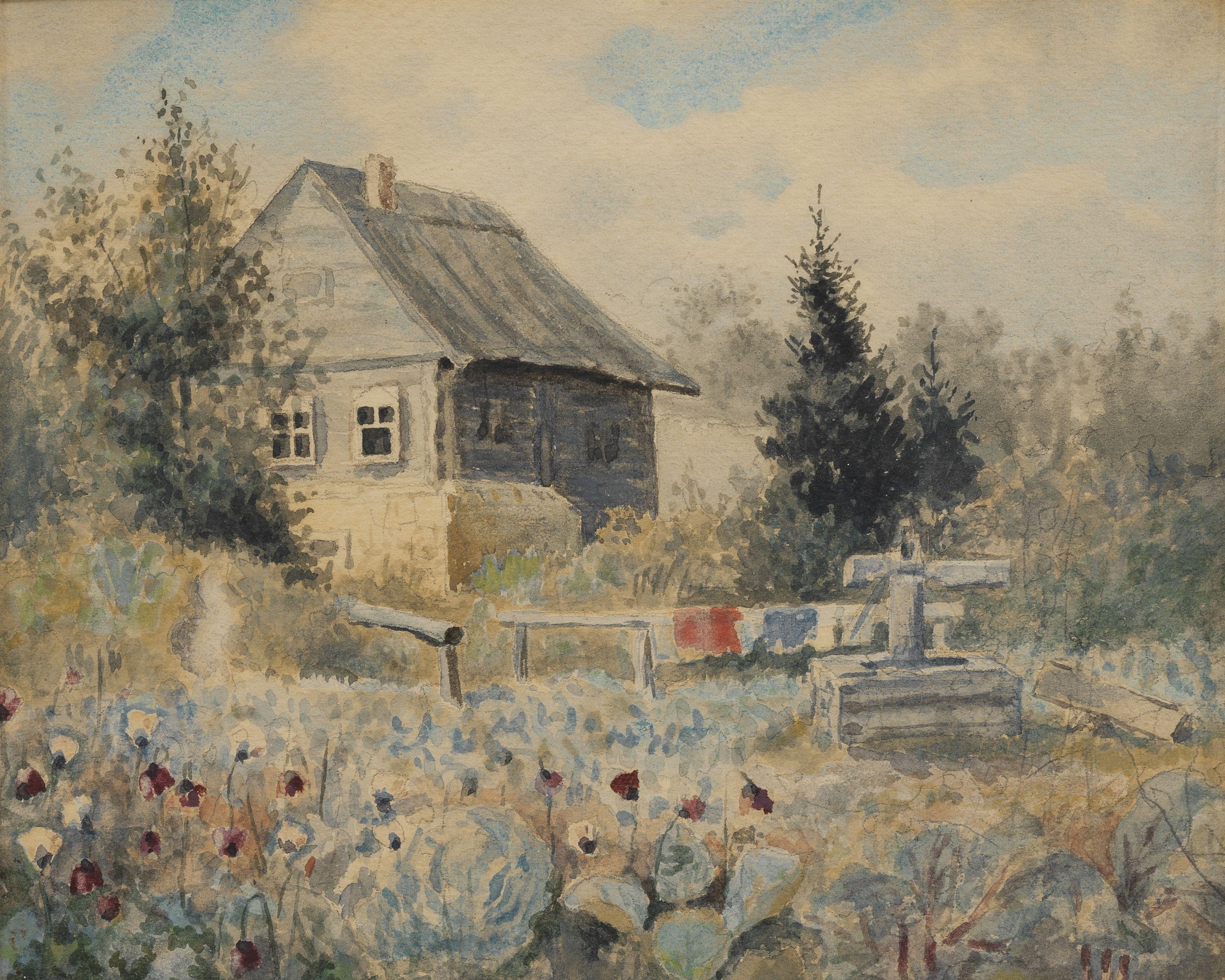 Clocher et datcha, deux aquarelles sur papier, la premier datée 1888, 17x12,5 et 13x16 cm. Provenance: Famille de l'artiste