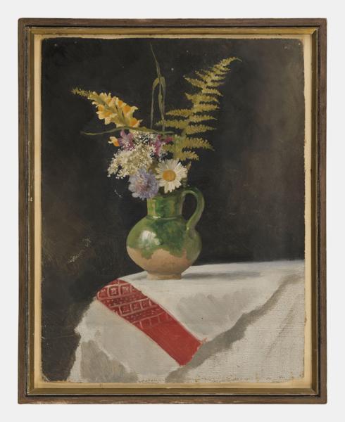 Bouquet champêtre dans un pot, huile sur toile marouflée sur carton, 28x21,5 cm. Provenance: Famille de l'artiste