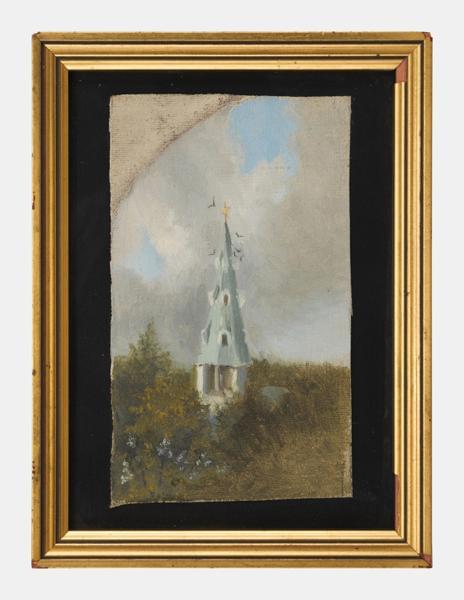 Clocher et village dans un paysage, trois huiles sur toile, 15,5x8,5, 16x13 et 7x10 cm. Provenance: Famille de l'artiste