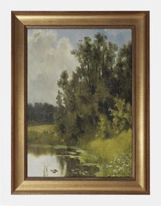 Paysage lacustre, huile sur papier, 42x30 cm.Provenance: Famille de l'artiste.