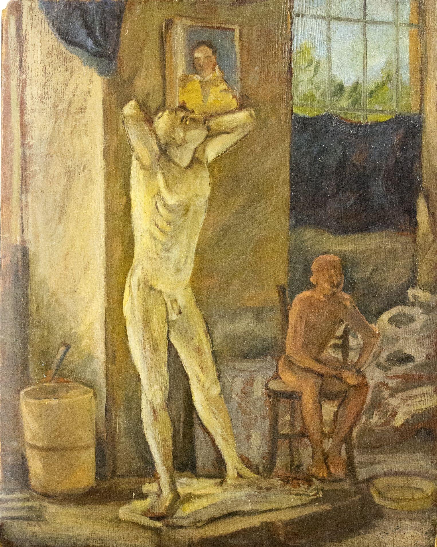 Scène d'intérieur, huile sur toile, 70x57 cm