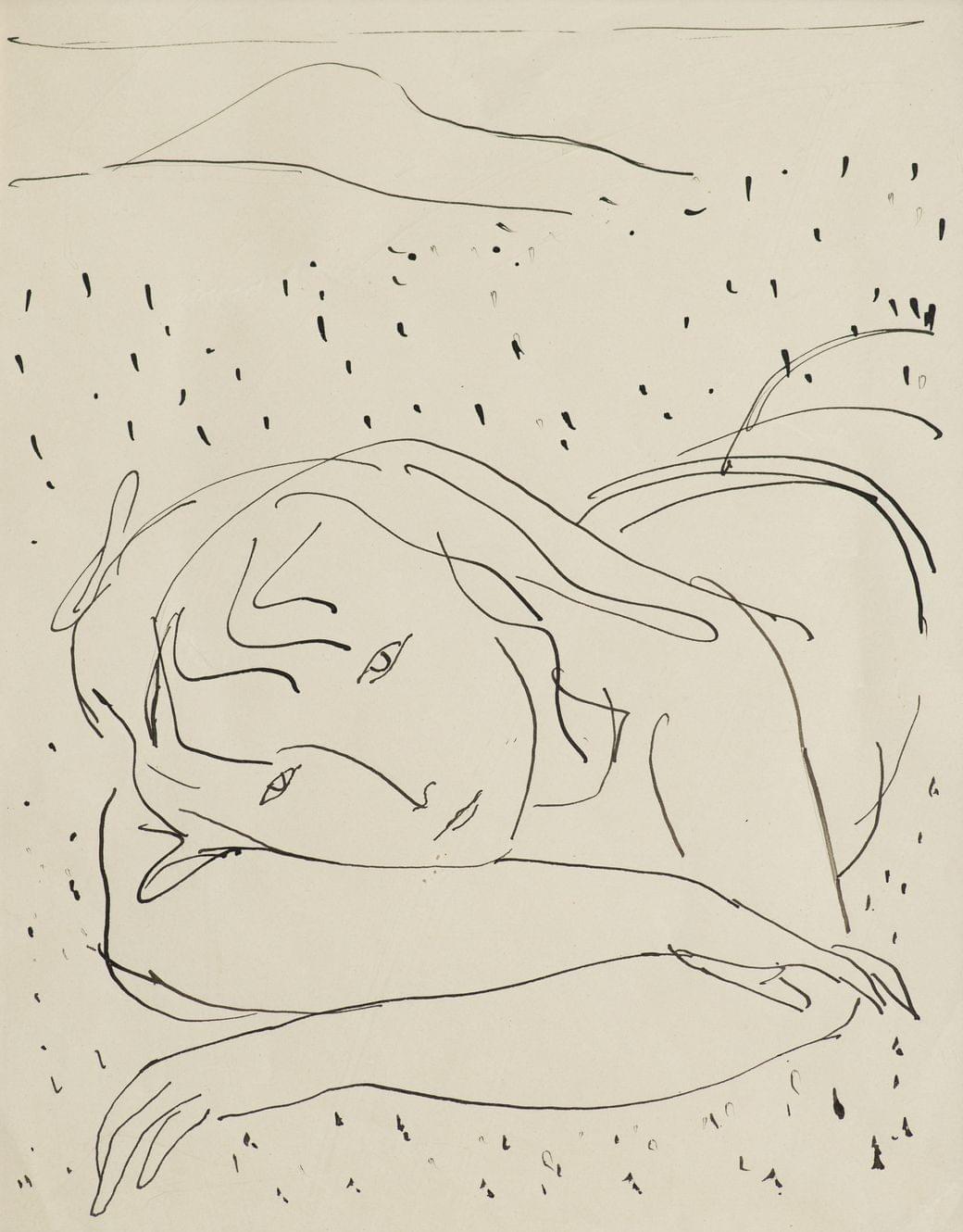 Femme accoudée, gravure en creux sur linoléum, 47x48 cm