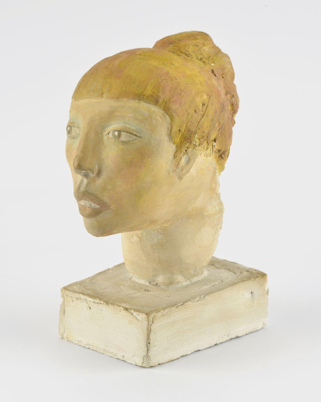 Jeune femme au chignon, plâtre et rehauts de couleur, H 23 cm