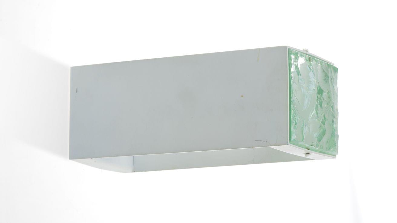 Applique, métal laqué blanc verre taillé dans la masse, circa 1964, 23x8,5x8,5 cm