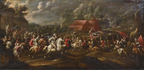 Paysans attablés à l'extérieur, huile sur toile signée F. Jacque...