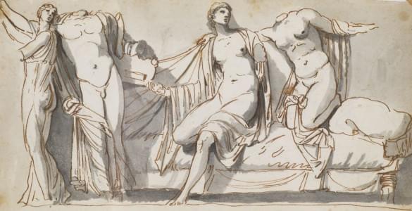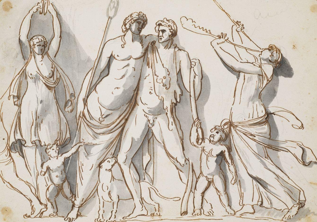 Le triomphe d'Hercule, et étude de bas relief, deux lavis d'encre sur papier, 17x25 cm