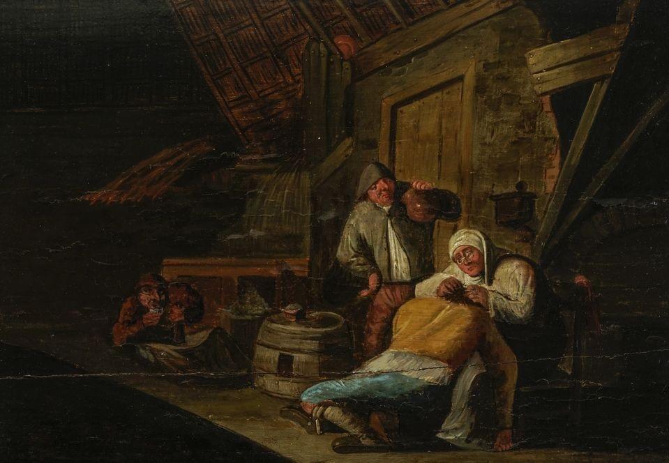 Scène d'épouillage, huile sur panneau, 22x32 cm