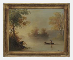 Indien dans un canoé dans un paysage, huile sur toile, 36x46 cm