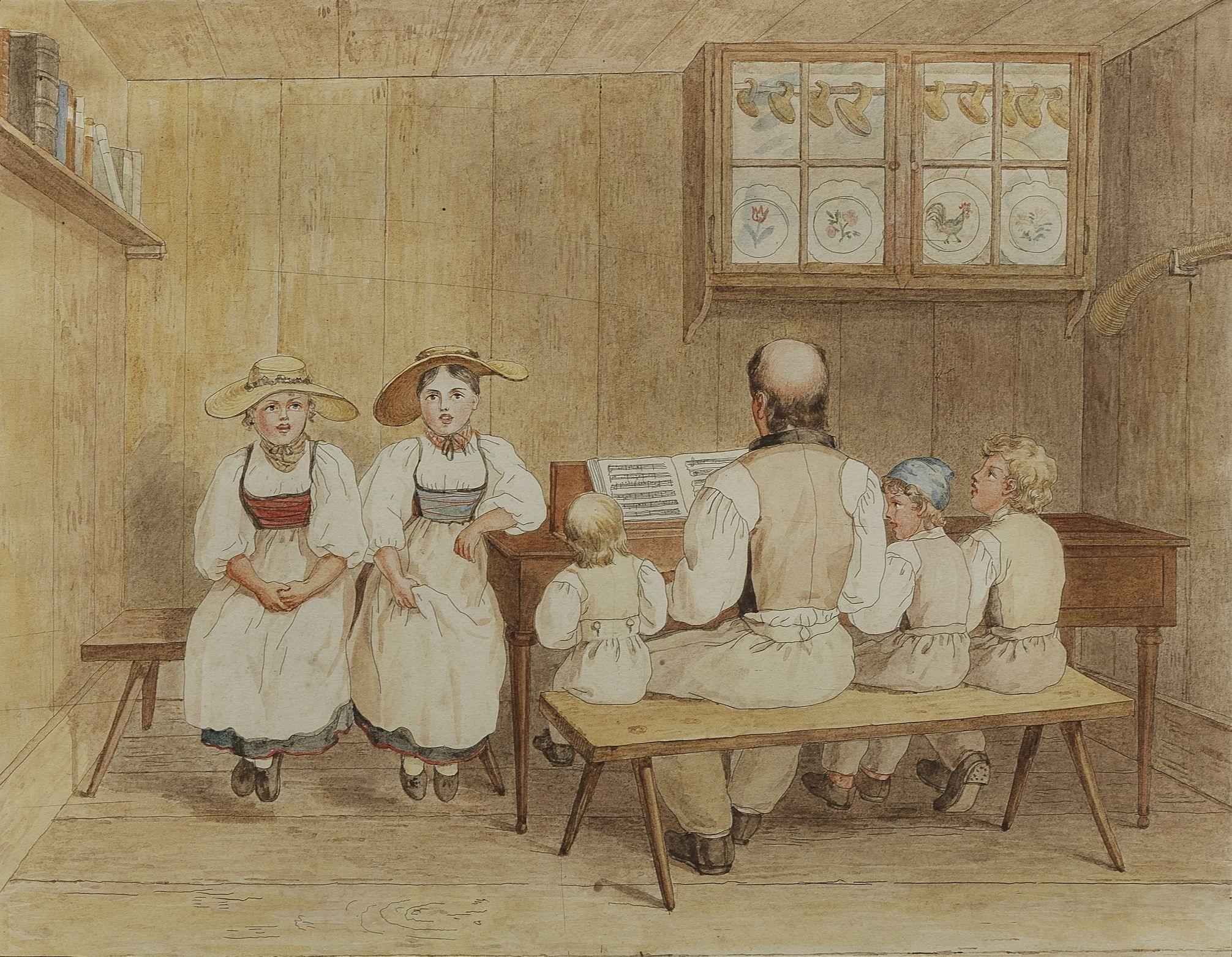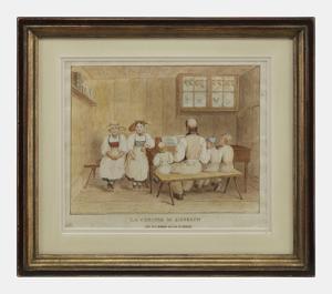 Montagne enneigée vue d'une fenêtre, aquarelle, 46x36 cm.Provena...
