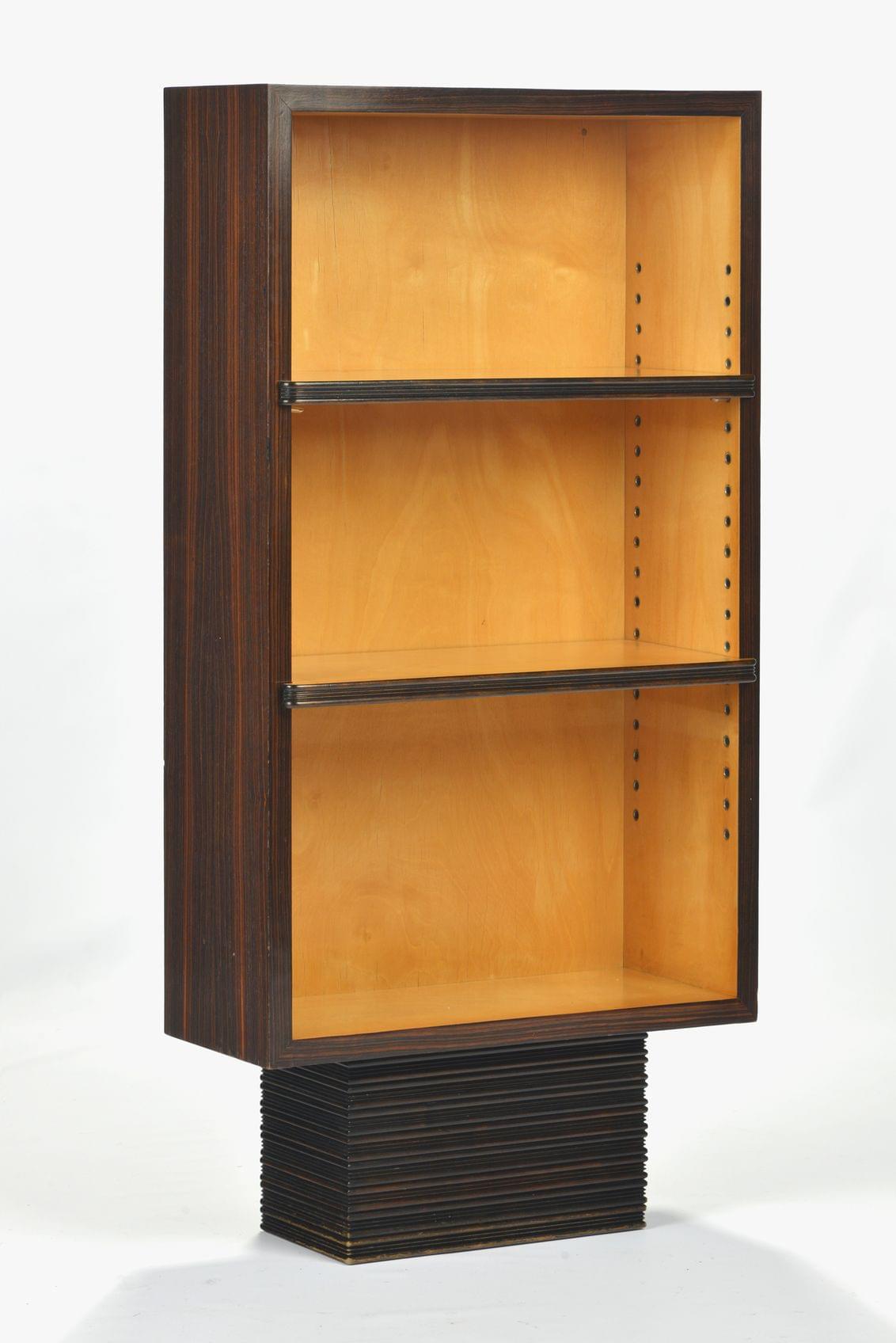 Petite bibliothèque d'époque Art déco, placage d'ébène de macassar et sycomore, Lausanne circa 1935, 110x54x22 cm