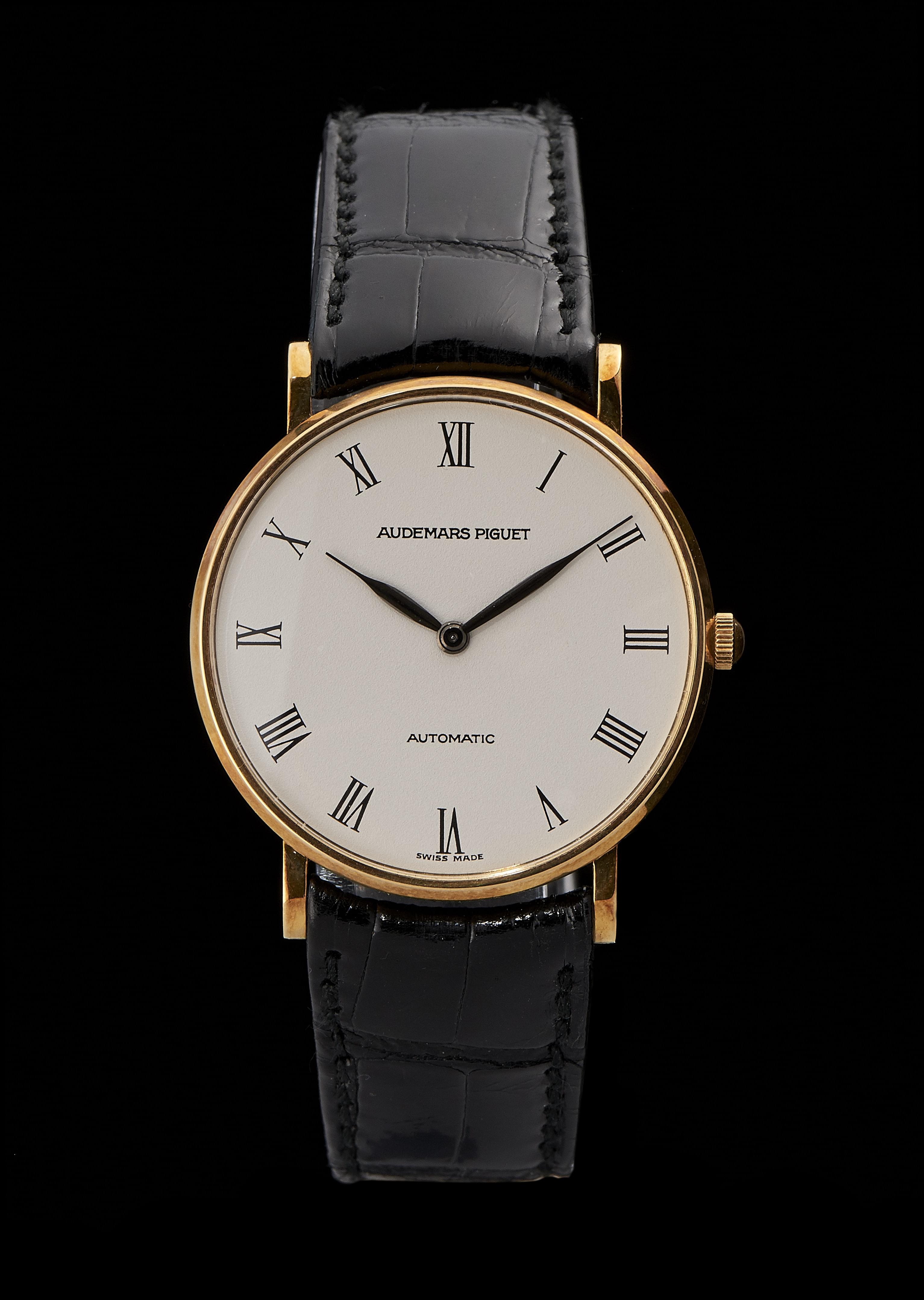 Cadran crème, aiguilles et chiffres romains noirs, réf. 14629BA, début années 90, or 750, D 33 mm