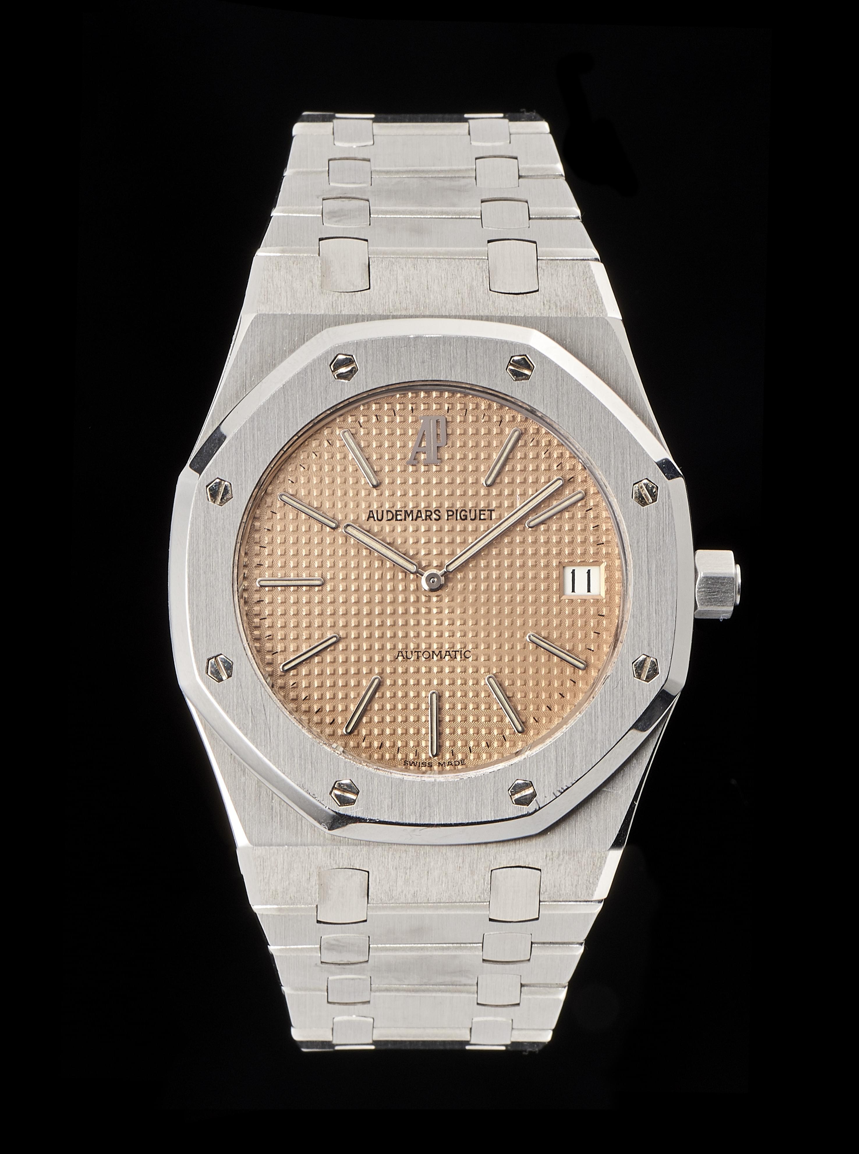 Cadran rosé, index bâtons et aiguilles argentés, date à guichet à 3h, réf. 14802ST, 1993, éd. limitée à 700 exemplaires en acier (num. 404), acier, D 38 mm, avec certificat d'origine, extrait des archives et un écrin