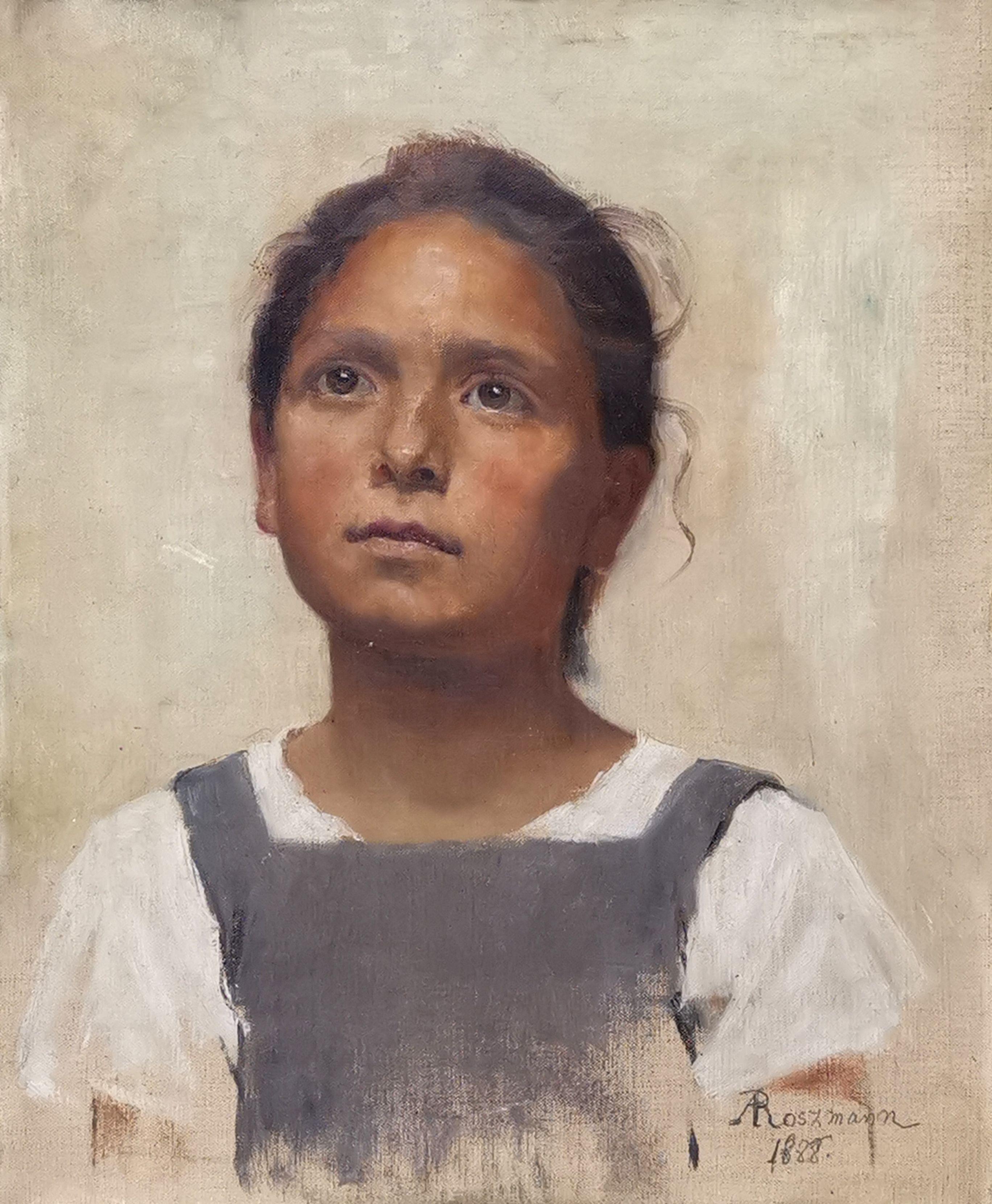 Portrait d'une jeune fille, huile sur toile, signée et datée 1888, 46,5x38,5 cm