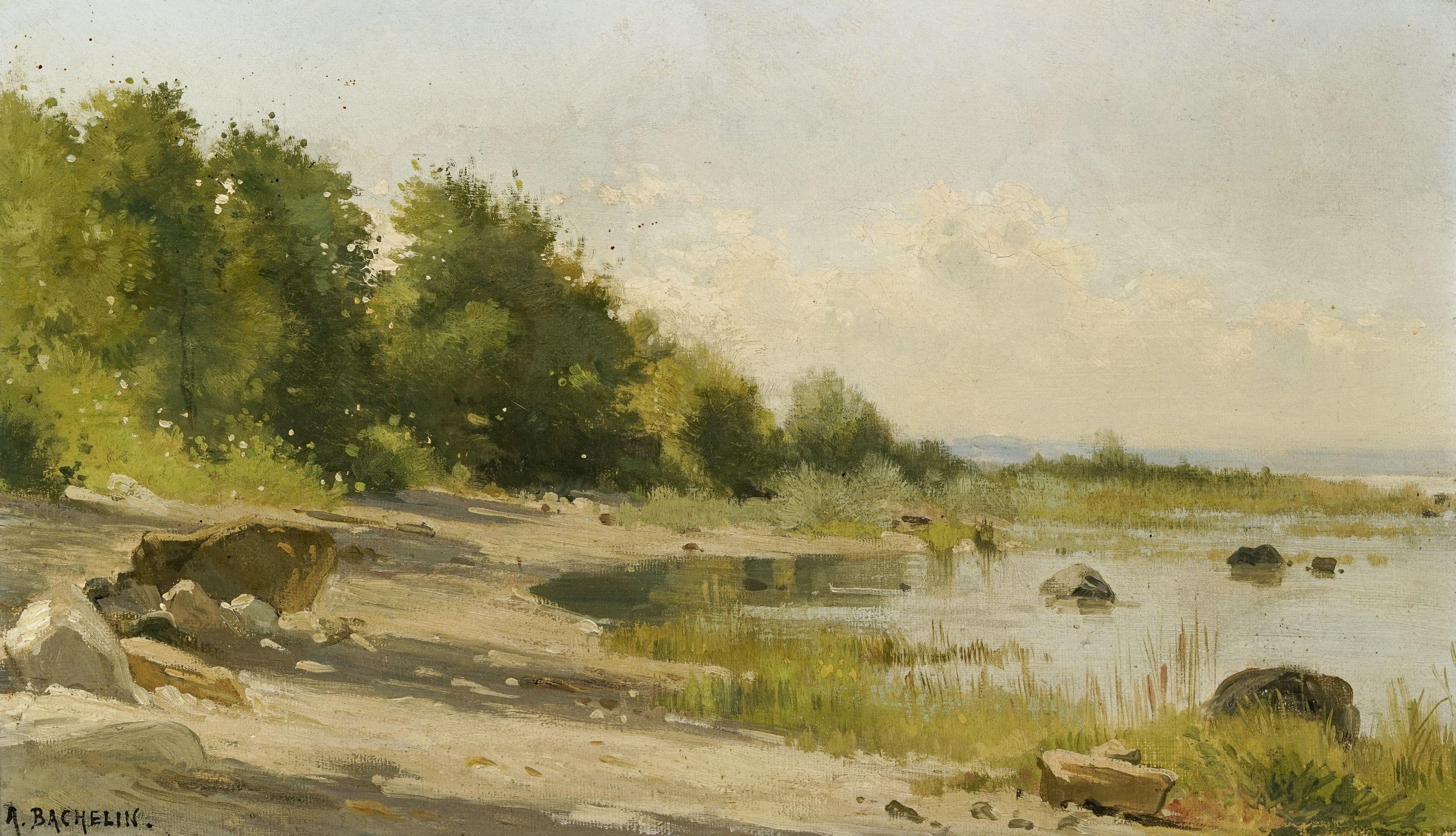 Paysage avec rocher, huile sur panneau, 31x40 cm
