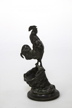 Coq gaulois sur un panier, bronze à patine brune, H 19 cm