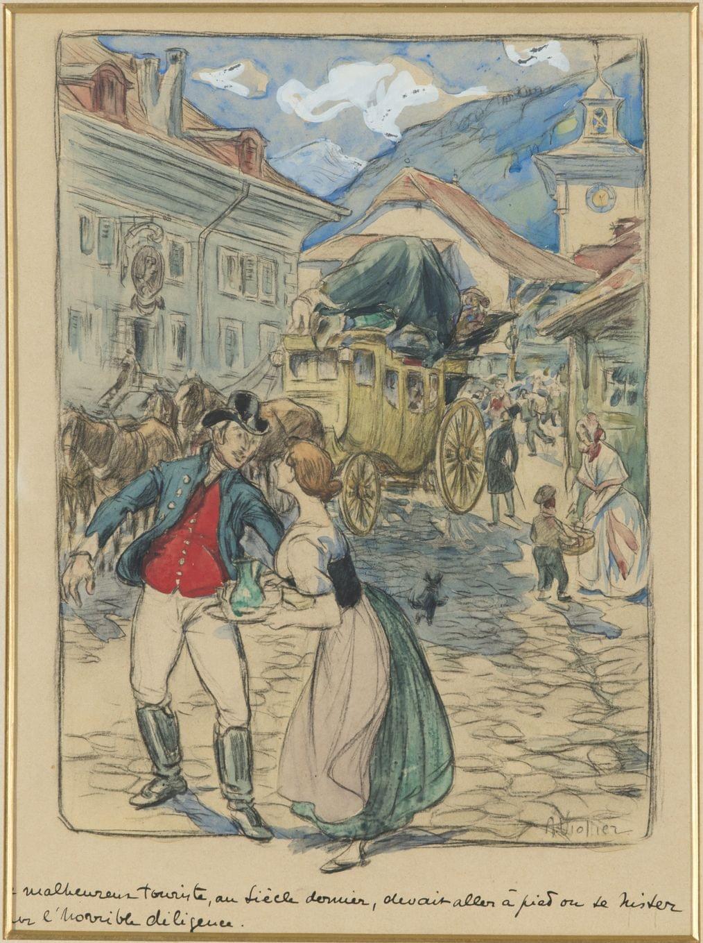 Fillette au pied des falaises, crayon et aquarelle sur papier, 2...