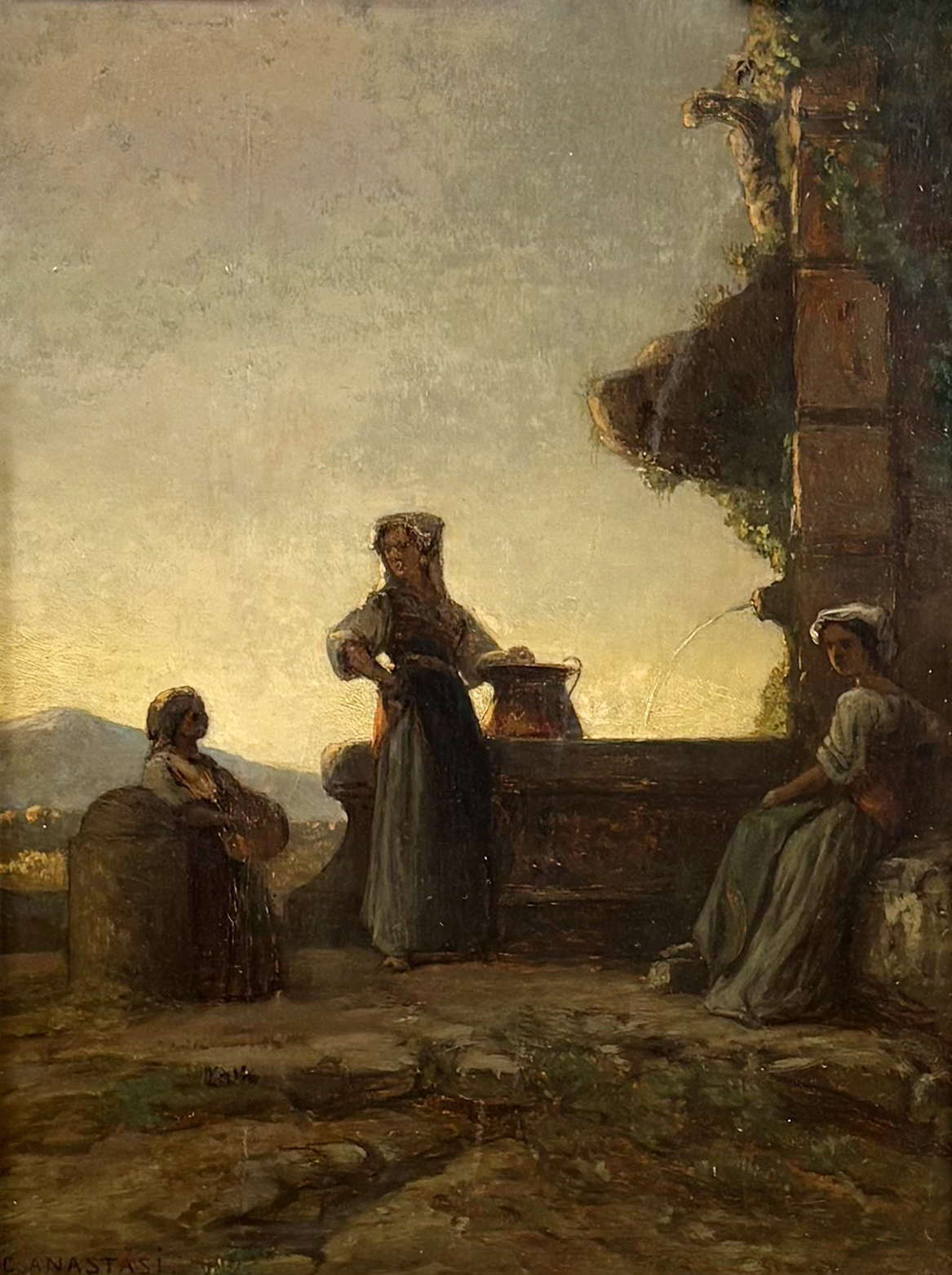 Paysannes de Rome au coucher du soleil, huile sur panneau, 19,5x...
