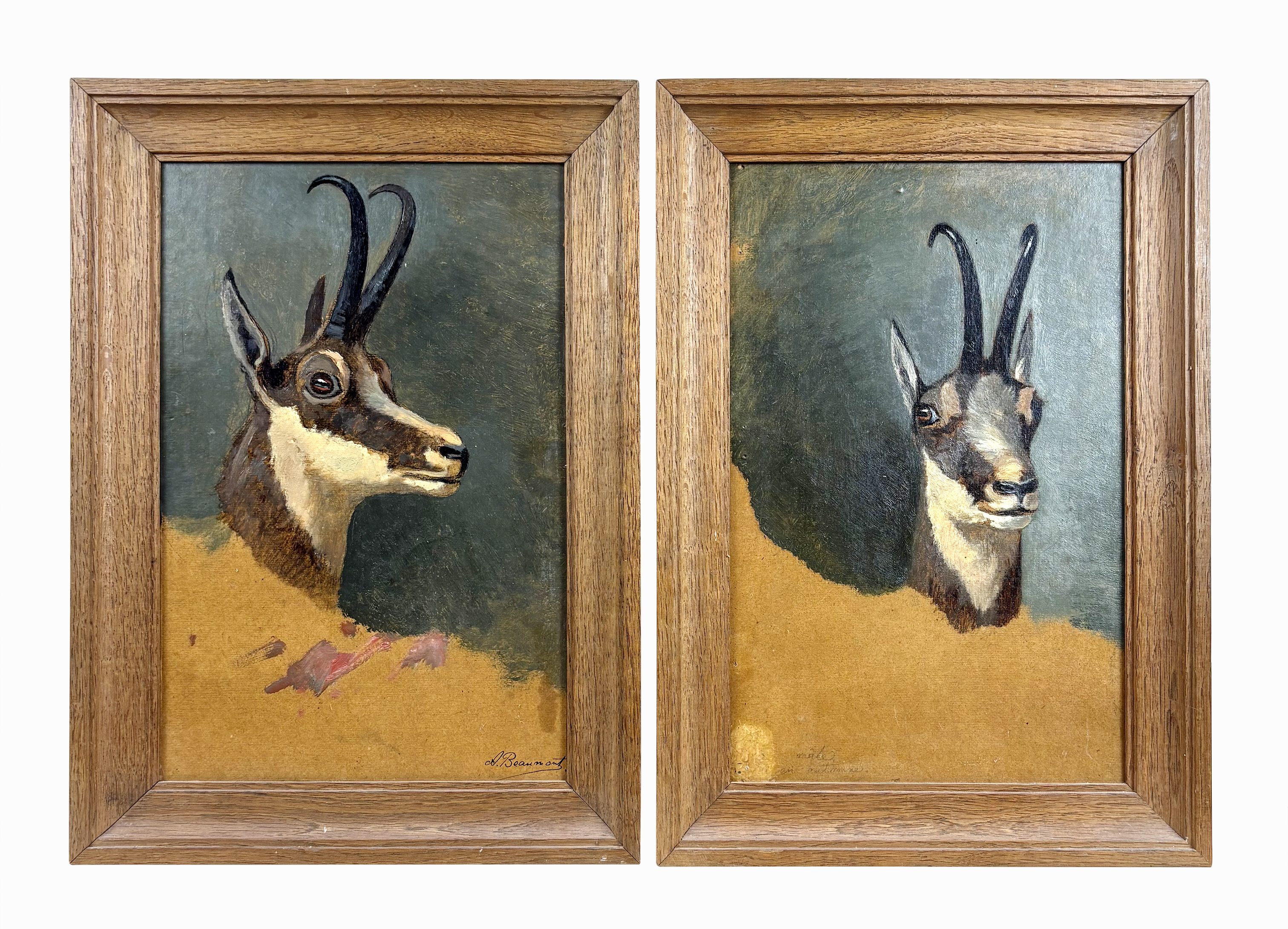 Cigogne et vol d'oiseaux, paire de pastels et crayons gras sur p...