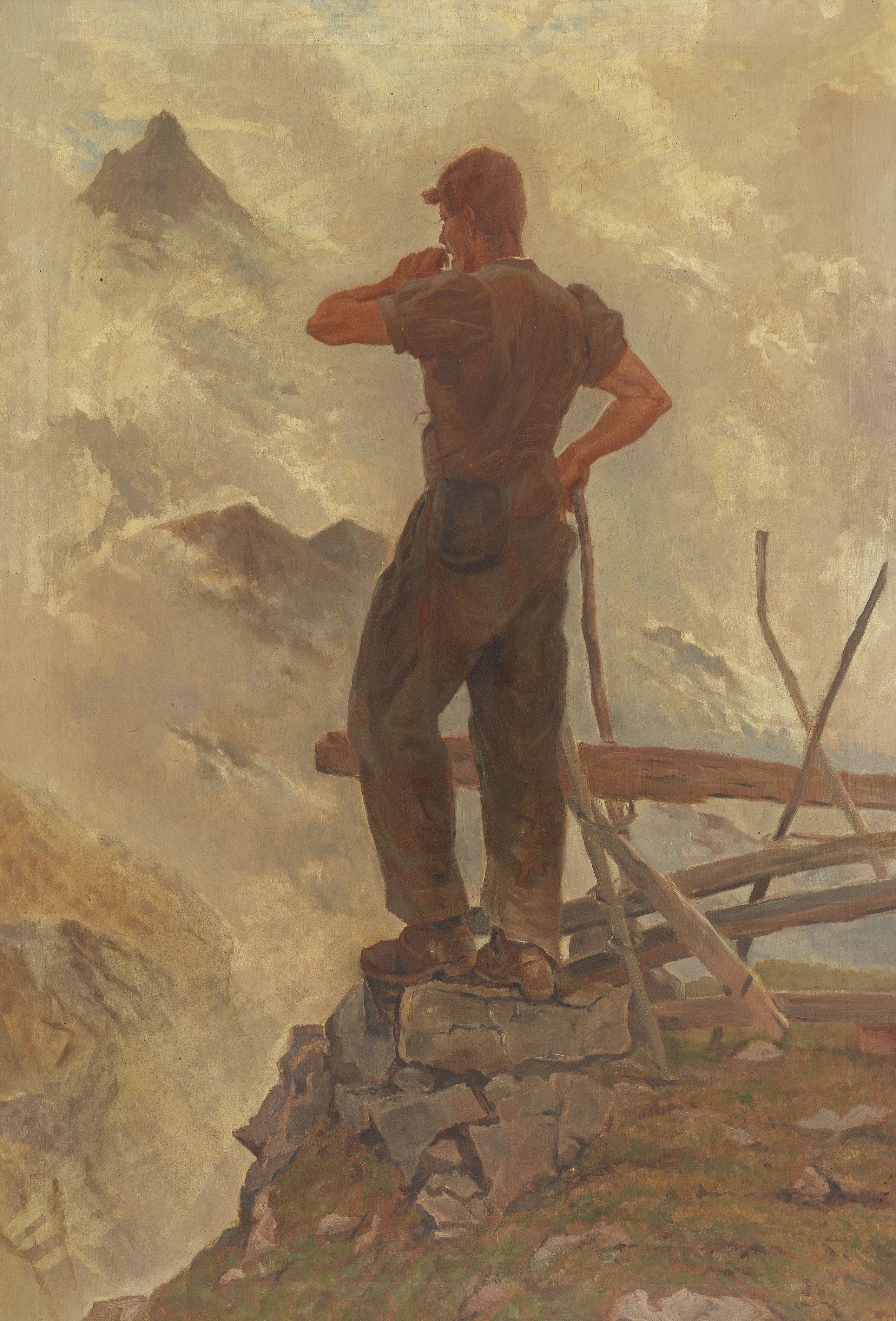 Homme regardant la vallée, huile sur toile, 100x68 cm
