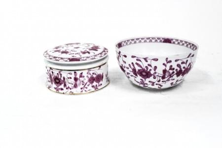 3183. Bol et boîte à décor dit fleurs indiennes dans le goût de Meisse...