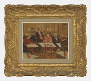 Intérieur de café à Montmartre, huile sur pavatex, signée, 22x27 cm. Numéro 44 du catalogue de l'exposition de 1957. Provenance: Galerie Montauti
