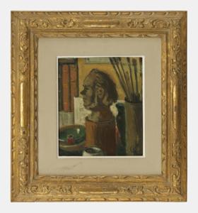 La loge, huile sur papier, signée, 15x15 cm. Provenance: Galerie...