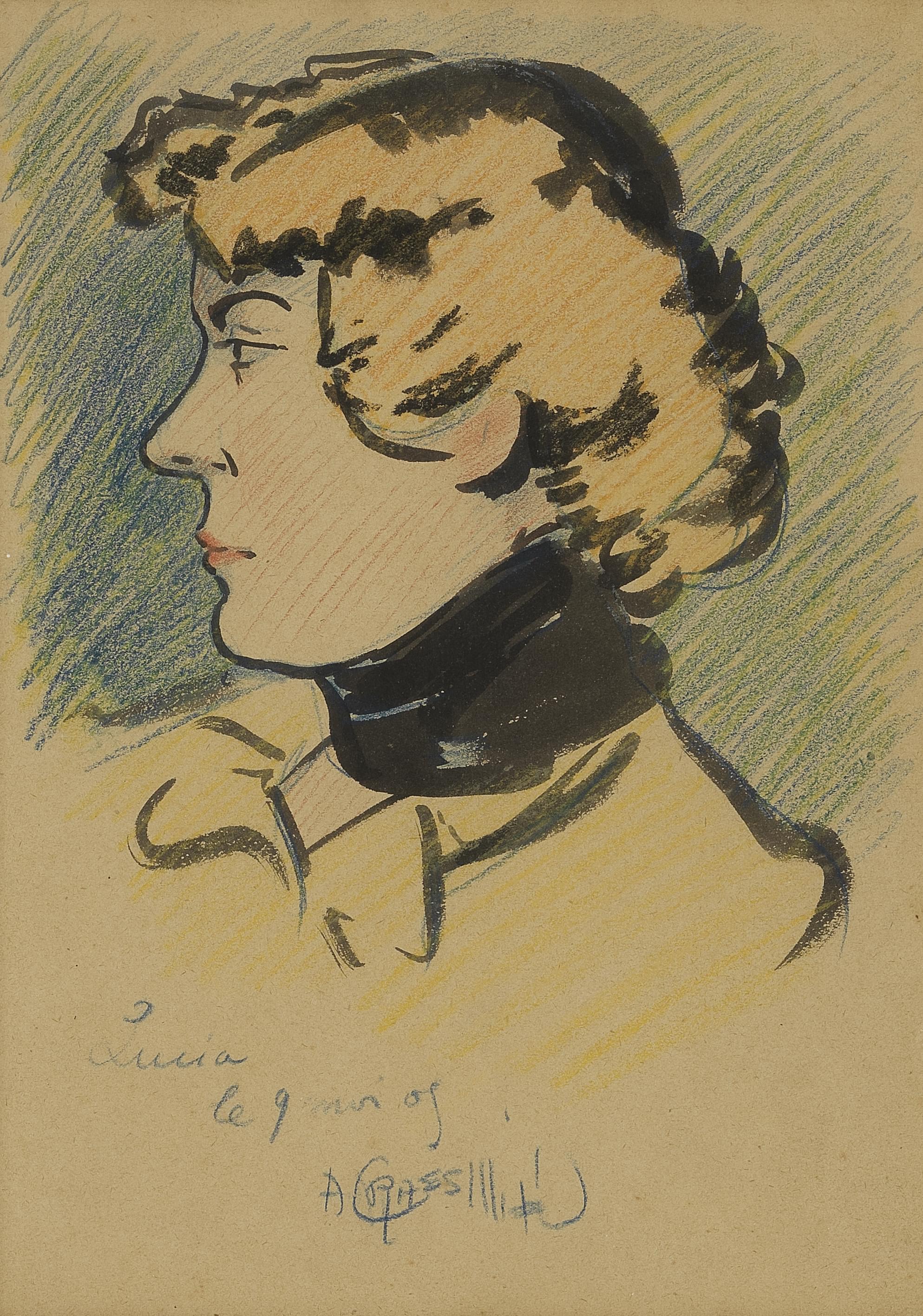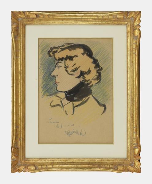 Portrait de femme de profil, pastel sur papier, signée et datée 9 mai 09, 26x19 cm