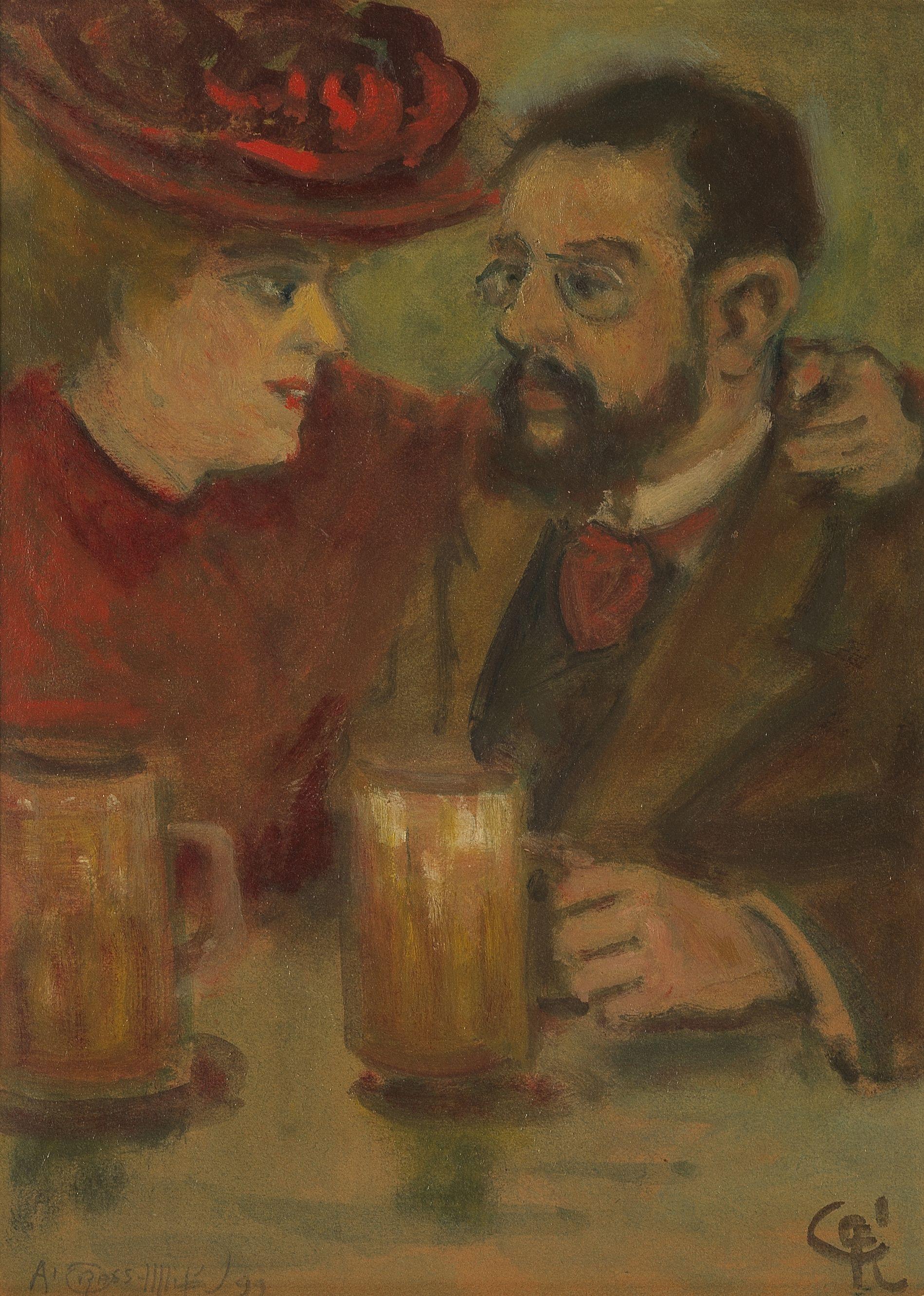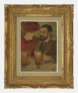 La loge, huile sur papier, signée, 15x15 cm. Provenance: Galerie...