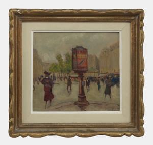 Colonne Morris, huile sur panneau, signée, 24x18 cm