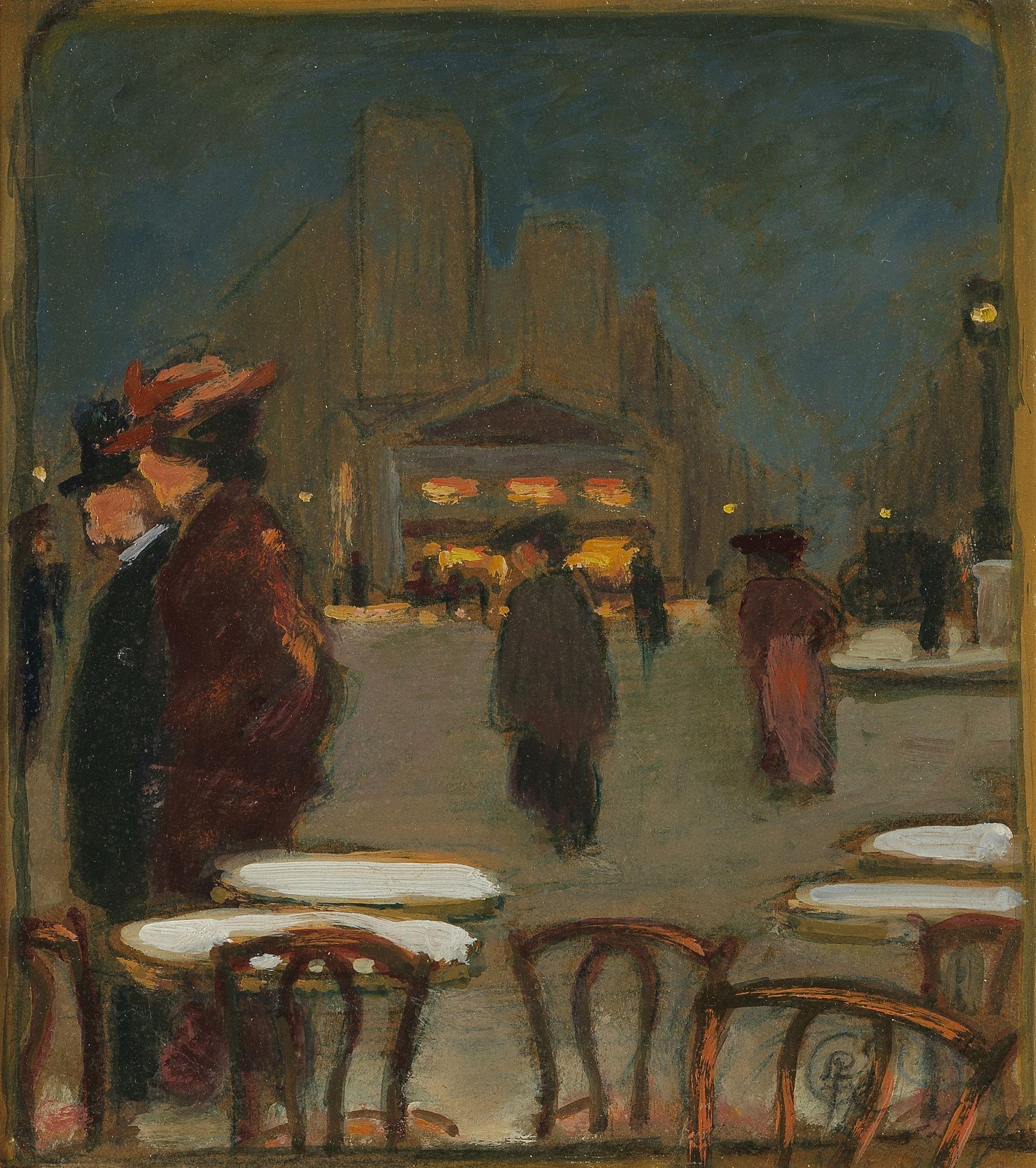 La loge, huile sur papier, signée, 15x15 cm. Provenance: Galerie...
