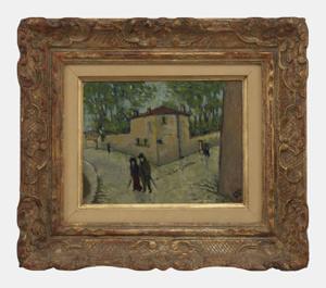 Colonne Morris, huile sur panneau, signée, 24x18 cm