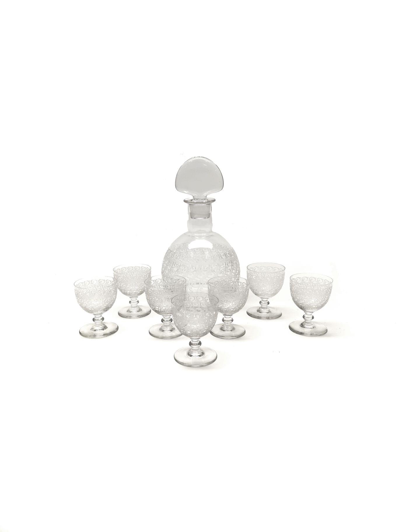 374. Baccarat, partie de service de verres sur pied à motif de volute...