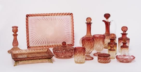 500. Service de cristal rose de différents modèles