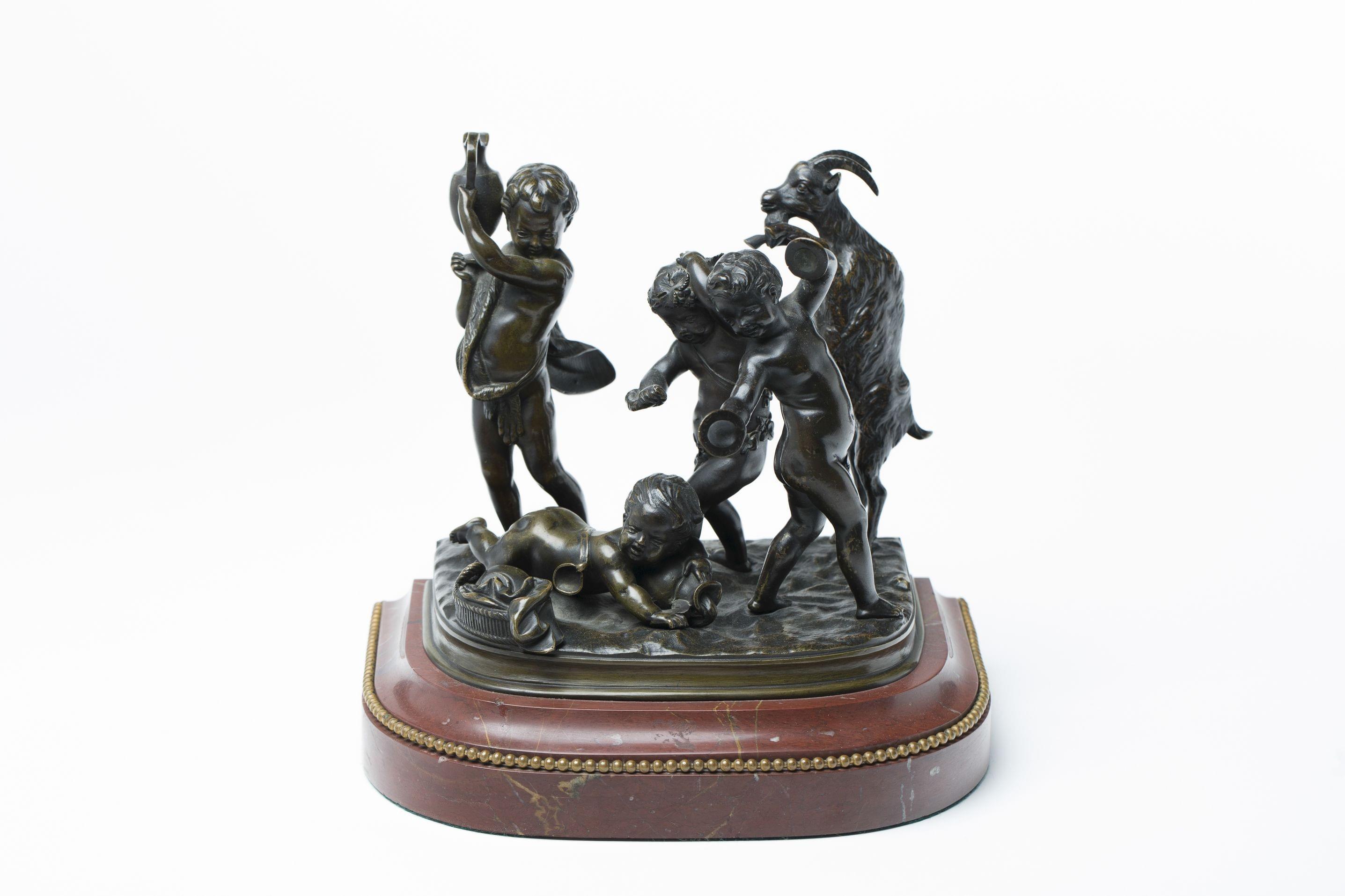 Groupe en bronze à patine foncée, socle en marbre rouge, H 25 cm
