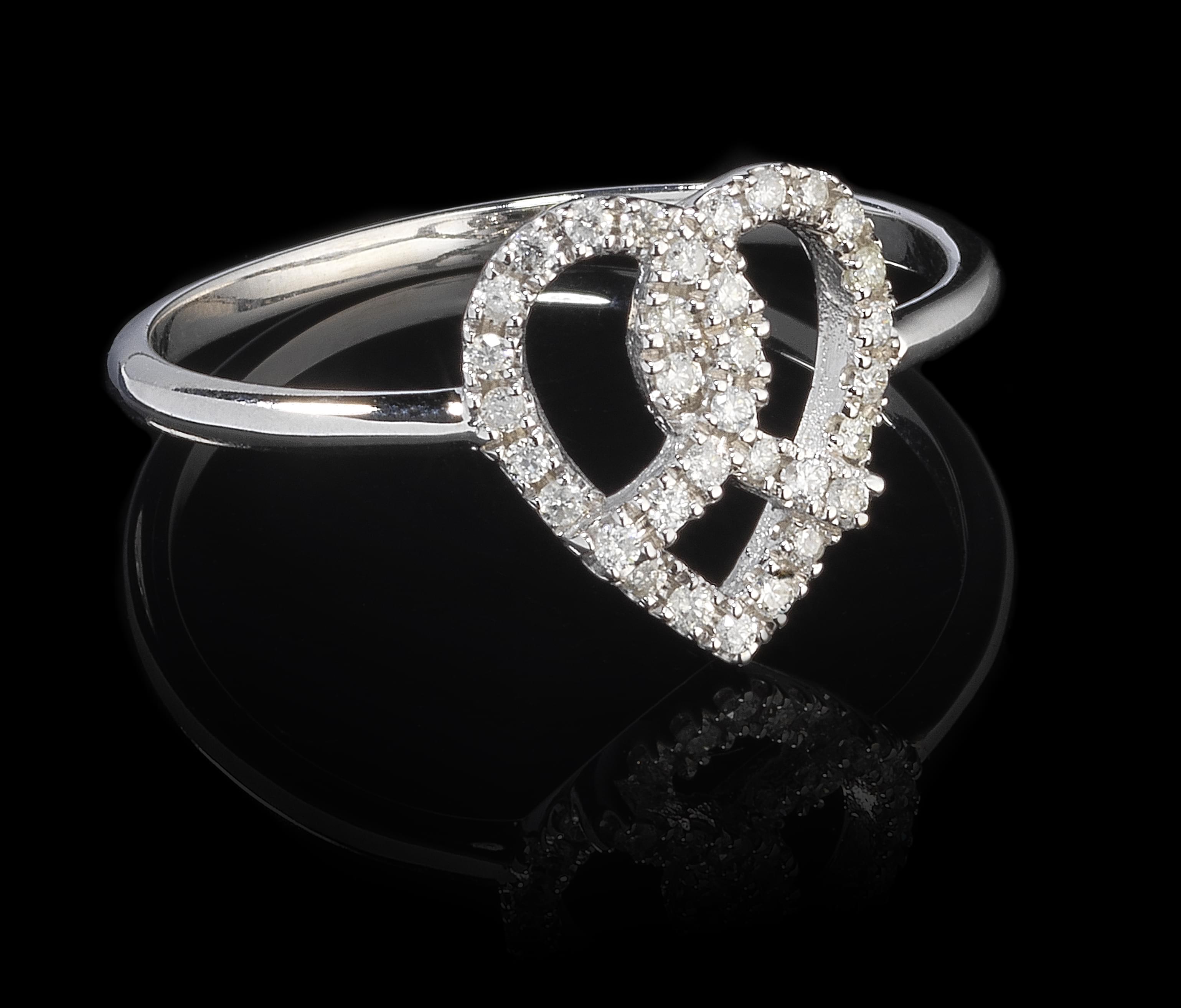 3004. *Bague à motif de cœur ajouré serti de diamants (env. 0,1 ct)